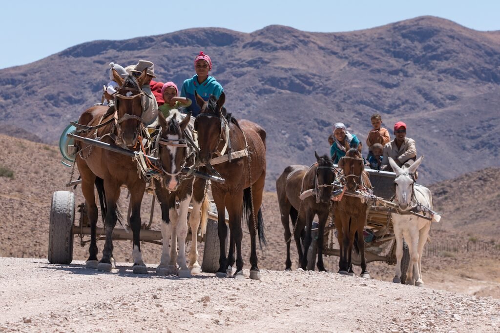 Our next destination was Sossusvlei which was a full-day’s drive over barren, rock-strewn plains occasionally broken up by low rocky ranges. With dust-devils and dust plumes from approaching cars often the only movement across the still landscape, encountering a family travelling on horse-drawn carts was an unexpected and a warm experience. In general, the Namib people are friendly, very attuned to their environment and have a wonderful rich culture.