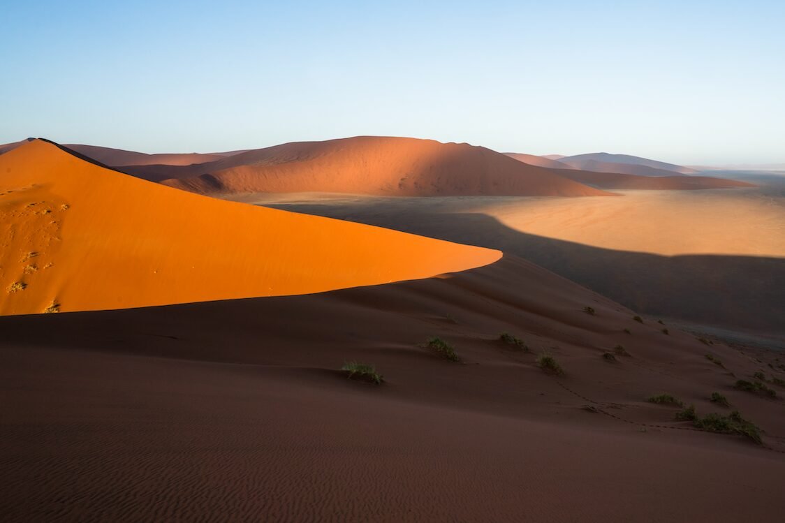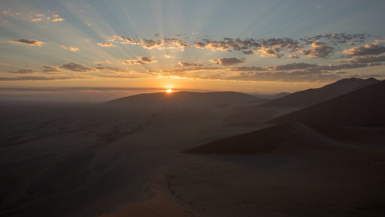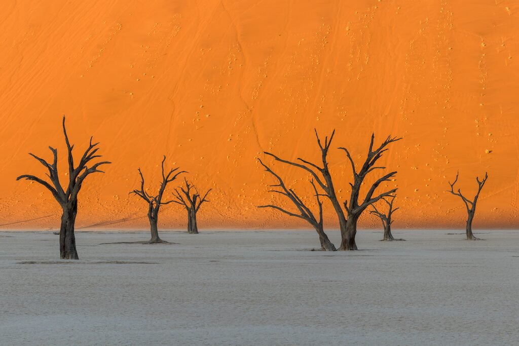 The next day we visited Deadvlei, arguably the one location everyone in the group wanted to visit. Deadvlei is a white clay pan sporting a few dead acacia trees, surrounded by towering dunes. On arrival, you realise how big the clay pan is and how few trees there actually are – is this really the same place that you’ve seen captured in stunning images? As you walk around, the stillness and quiet is nearly overwhelming – Deadvlei has an other-wordly feel to it and remains untouched by the ever-changing desert.